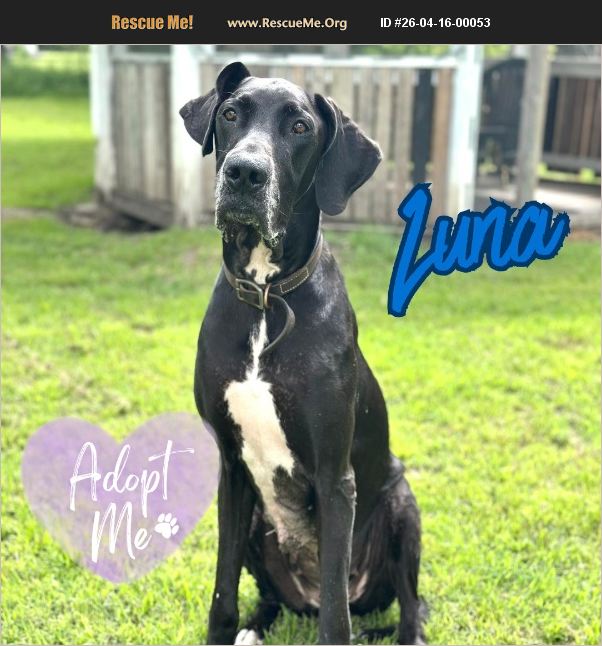 Location: Mart, TX (looking for a home within 3 hours of Dallas/Fort Worth) Date of Birth: 5/3/2021 Luna is a stunning Great Dane with a gentle heart and a whole lot of love to give. At 4+ years old and over 115 lbs, she may be a big girl-but don't let her size fool you�'�| she's really just a soft, snuggly sweetheart at her core. She can be a little shy when meeting new people, but give her a moment and you'll quickly see her affectionate side shine through. Once she trusts you, Luna lives for love-especially her signature 'nose nibbles' (her version of the sweetest little kisses ). Luna absolutely adores kids and does well with cats and dogs, making her a wonderful addition to a family home. She has a laid-back personality overall, but still enjoys getting out, having fun, and especially going for rides-tell her it's time to load up in the truck and she's all in! She is house trained, kennel trained, and already knows several basic commands including sit, come, stay, lay down, and shake-making her an easy, well-mannered companion who's ready to fit right into your life. If you're looking for a loyal, gentle giant who will shower you with love, snuggles, and nose nibbles-Luna is your girl Apply here! https://forms.gle/G2dJx2NV4JXZcZ9F6