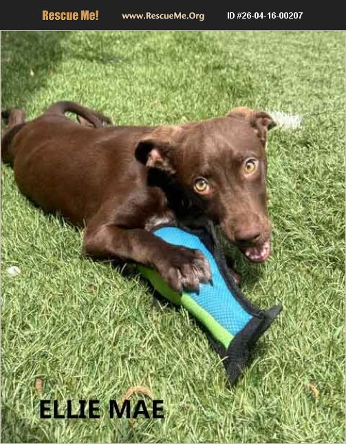 Ellie Mae is a fun loving, playful 6 month old Chocolate Lab mix. Lots of puppy energy, loves toys, good with other dogs and kids. Great family dog or would be a good addition as a playmate for another dog. She is current on her vaccinations and will be heartworm tested, spayed and chipped.