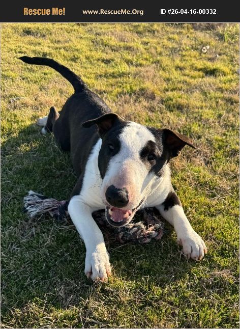 3-year-old Miniature Bull Terrier, ~40 lbs. Neutered, vaccinated, microchipped, and finished with heartworm treatment. Dan was born with a rear leg difference, but it doesn't slow him down! He can run, play, and enjoy life just like any other Bull Terrier. It doesn't cause him pain and doesn't require surgery-he's simply adapted. He's an easygoing, people-loving dog who has done great with kids (ages 3, 7, and 9). While he generally ignores other dogs, he can be awkward around food and would do best as the only pet for a calm, safe environment. He may need a home with minimal stairs, but otherwise he's a low-maintenance, loyal companion ready for his person. Transport is available for the right adopter. Apply at: https://bullterrierclubofamericarescue.com/adoption-application-form/