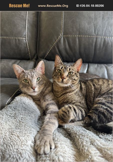 This is Gravy & Biscuit, bonded brothers who must stay together. They are 2 years and 8 months old and polydactyl. Gravy is the grey one and Biscuit is the brown one. Gravy is active, playful, and food-motivated. He loves laser toys and enjoys relaxing at the top of his cat tree watching birds. He will cuddle on his terms but is more independent. Biscuit is a sweet, affectionate boy who loves to cuddle at night and make biscuits until he falls asleep. He can be shy at first but warms up with time. They keep each other entertained and play together daily. Both are indoor cats but enjoy supervised outdoor time. We are rehoming them after welcoming our newborn. They've had some recent territorial issues, including accidents on baby items, and we're no longer able to manage it. We want to find them a safe, loving home together. **good with kids & other animals**