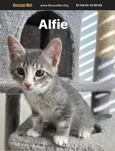Alfie is equal parts affectionate, approachable, independent, curious, and playful. A perfect kitten combination! He has an adorable pink nose and is the most cuddly of his siblings. He loves to do typical kitty things like play with toys, climb a cat tower, and nap in the sunshine. Alfie loves attention from people, welcomes being picked up, and has a terrific purr. He was not around adult cat, dogs or very young children when he was in foster care.