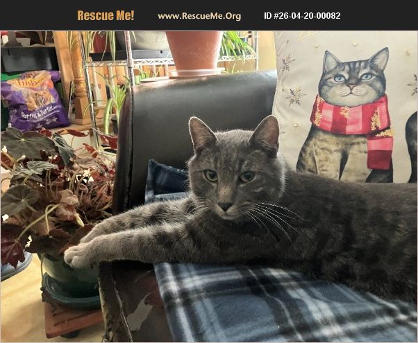 Freda is a domestic shorthair cat with beautiful soft gray fur. She has a very quiet meow. She likes to be a couch potato and watch TV with you. She enjoys eating fish-based foods. She would be best in a home with older children or just adults. She isn't fond of other cats. She wants to be the star of the show.