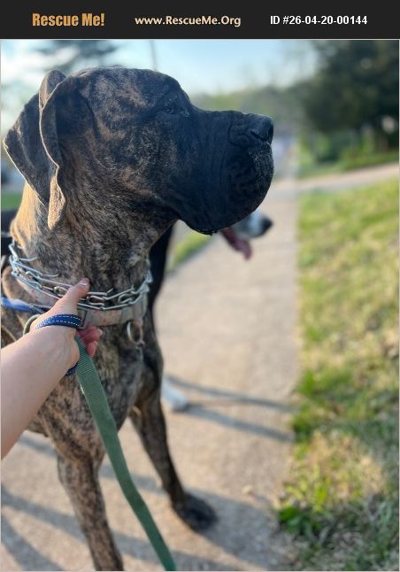 This animal is available to licensed rescue groups only. Please do not enquire unless with a licensed rescue group. May is a 14 month pure bred European Dane, she is super sweet and high energy, loves her humans and walks.