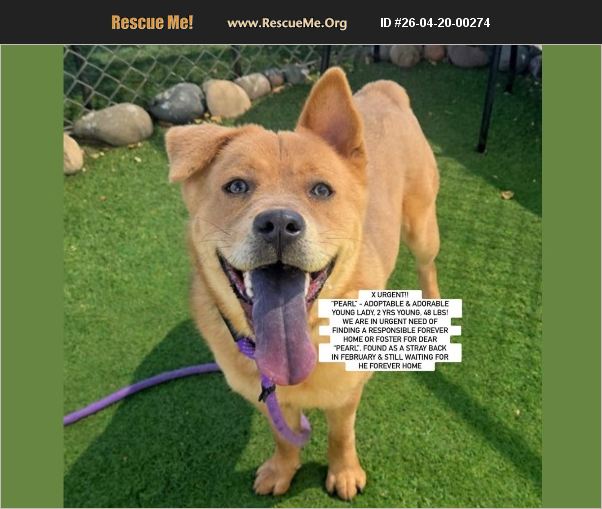 X URGENT AT PHOENIX, AZ - ID #A5160326 -'PEARL' AT MARICOPA COUNTY ANIMAL CARE, WEST LOCATION- ADOPTABLE and ADORABLE YOUNG LADY, 2 YRS young, 48 lbs! We are in urgent need of finding a responsible forever home or foster for dear 'Pearl'. Found as a stray back in February and still waiting for he forever home, her shelter bio says: 'I love to play and explore every corner of my world. Although I might be a bit shy at first, give me a little time and I'll warm up to show you my friendly, affectionate side. I have lots of energy and would love to share adventures with someone who understands me. If you're looking for a loyal companion to add joy and a touch of excitement to your life, I'm the perfect match. Let's make wonderful memories together! My adoption fee is quite the deal! Not only do you get my unconditional love and a new BFF, it includes my spay/neuter surgery, vaccinations, microchip, and even some cool coupons!' Additional shelter notes state, '04/14/2026 Moderate to pull from kennel, Easy to return to kennel, Not interested in toys, Grabby at treats, Somewhat Pulls on Leash, Calm, Appeared interested when walking past kennels, Pulled to exit, Sit, some jumping up and down in k-has not been out in sometime and was a return then. Some pull to yard. Running all over with some jumping. Plays hard. Leash falls off and then she wants to play with it. Drops on ground. Lets me have it. After running in yard returned to kennel 04/06/2026Run Buddy: Walks @ a fast & steady pace. Does well.' Additional behavior and medical details may be found on her listing link: https://apps.pets.maricopa.gov/adop.../Home/Details/A5160326 Pearl has now been spayed and ready for a new home. While she is currently adoptable, she may become Rescue only and or also be soon at risk soon due to space, or if she declines in the shelter environment or gets sick. Since she is NOT Rescue only at this time, you may contact the shelter directly to adopt her. Adoptions are currently only $50 currently. This includes spay/neuter surgery, vaccinations, and microchip. Adopters and Rescue groups should contact the shelter directly at: [email protected] and by calling 602-506-7387 and providing ID. If you may be interested in fostering, fostering to adopt, or helping in some other way (i.e., pledging for her rescue if needed), please email [email protected] asap at Southern California Chow Chow Rescue Network who is trying to find placement asap, AND also fill out a foster application on https://dogfoster.org/ so both entities can work on pairing a foster to a rescue group to help. Pearl's facebook post with updates, additional pictures and videos as we receive such are posted here: https://www.facebook.com/783968124/posts/10168873258368125/?mibextid=wwXIfr
