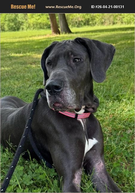 Meet Xena, who comes to us as an owner surrender when her previous owners had a change in their lifestyle where neither were able to keep her. Xena is a 4-5-year-old, 93.5 lb., Great Dane. This gentle giant is a sweet soul who radiates love and affection, craving the company of humans - adults and kids alike - and harmoniously accepts other dogs and cats. Xena is housebroken, crate trained, and food motivated, with a talent for sitting on command, offering her paw, and showering her loved ones with kisses and hugs. With her excellent leash manners, Xena enjoys leisurely strolls, and car rides. Her calm demeanor makes her an ideal companion, whether at home, in the park, or on an adventure. Xena is spayed, current on her vaccinations, and microchipped. Her foster family adores her, and you will too. If you would like to meet Xena, please reach out to us for an application.