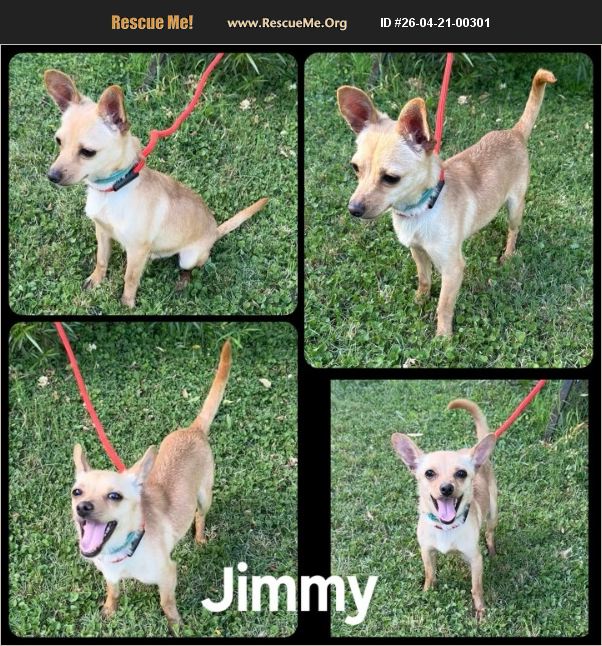 Meet Jimmy! He is around 3 years old and weighs 7 pounds. He's a super cute and sweet Chihuahua ready for a forever home! He was found in a parking lot. He is now neutered and microchipped and current on his vaccinations!