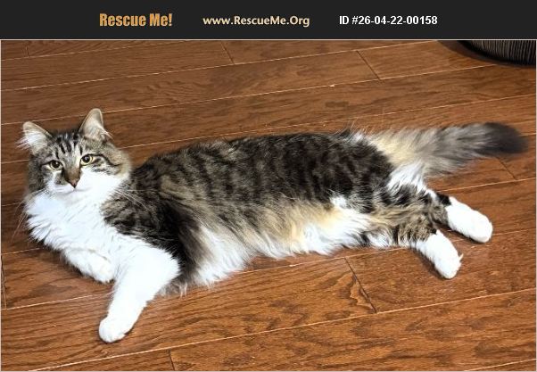 Jay-Maine Coon/DLH male, ~ 2-3 yr (April 2026) Contact [email protected] for an application. Jay came to rescue from a small rural town Humane Society. He had been found as a stray. A lovely boy, he has been in an adoptive home with another cat for over a year. Recently, the family found out they have to move and can not take Jay with them. He's looking for a home again. He is a loving boy and has been a good feline companion for the family. If interested in helping him have a secure home again, please contact us. For our application, email [email protected]. Jay's adoption fee is $150 to help cover the expenses of getting ready for his new home. Please include your location and a phone number for future communication.