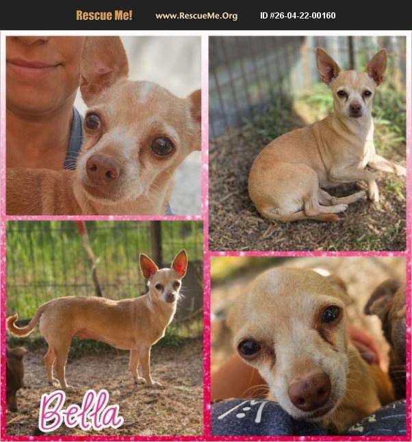 Meet Bella! Age: Approximately 7-8 years old. Breed: chihuahua. Size: est 9lbs. Training: Crate trained, working on leash and house training and doing well. Good with dogs/cats? Yes to both. Good with kids/men/women? She can be a shy at first, but warms up to be affectionate and loyal! She can be nervous around small children so we feel she would do best in a quiet home. Personality: once he warms up, she is friendly, affectionate, and laid back. Reason for rescue: Bella's owner had to go into assisted living and needed to rehome Bella and her daughter. She is spayed, heartworm negative, microchipped, and current on all vaccinations and preventatives. If you are interested in adding this sweet girl to your family, please message us to request an adoption application. Adoption fee: $150.