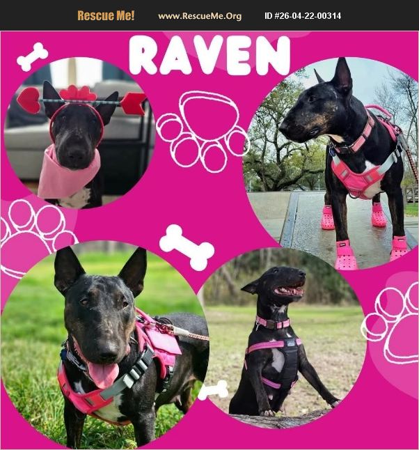 Raven Sequin, Tx 6 yrs ~50 lbs Raven is a sweet, affectionate Bull Terrier who truly loves her people. She's the kind of dog who wants to be right by your side-whether that's curled up on the couch or tucked into bed for the night. She's a smart girl who is already picking up on structure and routine. Raven knows commands like 'sit' and 'in' for her crate, has learned to ring bells to go outside, and is continuing to work on her manners. She thrives in a home with consistency and has done wonderfully with handling-baths, nail trims, and medications are all a breeze for her. Raven does best as the only dog in the home, as she is currently dog reactive. She may become more tolerant over time with the right guidance, but for now, she'll need a dog-free environment where she can relax and feel secure. She does well with people and children, though she can get a little excited at times. She enjoys moderate walks, enrichment toys (especially ones she can 'deconstruct'), and plenty of downtime. Raven is heartworm positive and currently on slow-kill treatment but is otherwise a healthy, mellow girl. If you're looking for a loyal, loving companion who just wants to be your dog, Raven may be the perfect fit. Application Process and Adoption Fee applicable Transport can be arranged to the right home https://bullterrierclubofamericarescue.com/adoption-application-form/