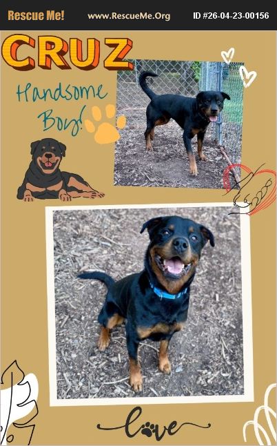 URGENT!!! Meet a loyal companion with a heart of gold! Cruz is a 6-year-old neutered male Rottweiler is the perfect blend of well-trained, affectionate, and devoted. He already comes with an impressive list of commands-he knows sit, stay, come/here, down, heel, leave it, drop it, focus, off/get, and wait/stop. He's incredibly food motivated, which makes continuing his training both easy and rewarding. What truly sets him apart is his deep love for his people. He is a total cuddle bug who absolutely adores snuggling and will happily roll over for belly rubs any chance he gets. His loyalty runs deep-he wants nothing more than to be close to his person and be part of the family. He does have some food possession tendencies, so he would do best being fed separately to ensure everyone feels comfortable and safe. While he has previously lived with another male dog and coexisted successfully, he prefers a more laid-back environment and isn't interested in socializing with other dogs-especially those with higher energy. He's more of a 'do his own thing' kind of guy and would rather skip the meet-and-greet scene. He is fine with dogs coming up to him but not staying around him or him staying around them! ESPECIALLY if they are barking! He gets overstimulated in those situations and will act out! **HE IS NOT DOING WELL IN THE SHELTER FOR THIS REASON** He has shown he can coexist with cats, though a slow and proper introduction will be important. He's not particularly interested in toys, but he makes up for it with his affectionate nature and love of treats. Because he can be uncomfortable with certain types of handling-like someone standing over him or reaching around his neck-he would do best in a home with older children who can understand and respect his boundaries. If you're looking for a calm, devoted, and affectionate companion who just wants to love and be loved, this handsome Rottweiler is ready to be your best friend. Behavior Assessment: Personality Extremely loyal and people-oriented Total cuddle bug - loves snuggles & belly rubs Calm, laid-back companion Prefers people over toys or other dogs Training & Commands Very food motivated - great for continued training Knows: sit stay come/here down heel leave it drop it focus off/get wait/stop Behavior Shows food possession - must be fed separately Lived with another male dog successfully, but: Not interested in socializing Prefers calm, low-energy dogs or being the only dog Not a fan of: Dogs rushing into his space High-energy dog interactions Dog's constantly barking around him-- he NEEDS a handler who knows him and knows he doesn't want to be 'stuck'. ** IF HANDLER DOES KEEP HIM IN THE CHAOTIC ENVIRONMENT AND/OR DOESN'T REMOVE THE CHAOTIC DOG OR REMOVE CRUZ FROM SITUATION, HE WILL CORRECT THE 'PROBLEM' HIMSELF. Can live with cats - slow introductions required Not interested in toys-- unless it's playing fetch! He drops the ball when told and waits for you to throw it again for him! Handling Notes Does not like: People standing over him Reaching around/over his neck Needs respectful, predictable handling