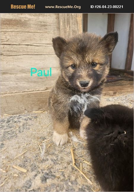 Meet Paul! This adorable little fluffy pup is thought to be part husky and part German Shepherd. His Mom was solid white, but he and siblings are all dark. He is available after eight weeks of age and is currently in Southern California Paul can travel (within reason) in the region. Eddies Heart is the Rescue.