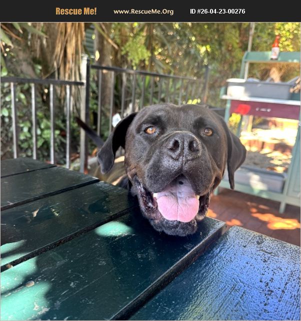 My name is Santiago. I am a neutered male, black Mastiff. MY RESCUE DEADLINE IS MAY 3RD, 2026. Age: The shelter staff think I am about 5 years old. Weight: I weigh approximately 100.00 lbs. More Info: I have been at the shelter since Jan 30, 2026. MY DEADLINE IS MAY 3RD, 2026. I am waiting to meet you at 5473 Overpass Rd, Santa Barbara, California, 93110. Come visit me between 10 a.m. and 6 p.m. Tuesday through Sunday. I am 100 lbs of love, charm, and cuddles. 5 years old with gentle giant energy! Santi is a total heart-stealer who just asks that you don't get in his face right away. Give him a little respect, and he'll reward you by plopping his giant head on your lap like it belongs there (because it does). What he's into: - Food (very trainable) - tennis balls (loves fetch) - butt scratches - cuddles - sparkly things - car rides - and elite-level head massages. He knows sit, down, leave it, and come, walks fairly well on leash (he is a big dude), and is fully potty trained. Santi is selective, but he loves his lady dog friends and is always down for a good game of tug-of-war with them. Total gentleman, certified flirt. Home goals: Big-dog-savvy humans who can keep up his training and give him the safety and connection he craves. His fosters say he's a sweetheart with family and friends and truly loves living in a home. Looking for a loyal, cuddly, goofy best friend? Santi's waiting.