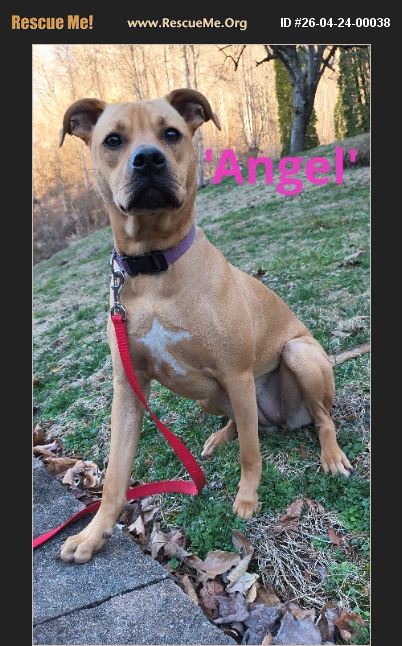 4-24-26 Angel is 1 yr old 45 lbs Came from Hills of Virginia Crate trained, Sleeps all night Potty trained She is high energy and needs active human She is currently in foster home with 3 other dogs She can hang with the big dogs Her favorite friend is a 125 lb Rottweiler She loves humans With her high energy, probably need Adult home Lots videos and pics of her when requested She is currently in foster home in Lexington KY She's a great girl!