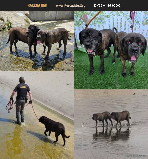 River (daughter) and Floe (mother) were picked up by Animal Control Officers on 4/17/26 after being trapped within the Los Angeles River Channel for at least 48 hours, both were extremely exhausted after the heroic efforts of Animal Control Officers to bring them to safety. Although River & Floe have regained their strength to walk around the property, River has major case of double cherry eye that require medical attention outside shelter resources. If you or someone you know can help please contact the shelter at 562.570.3080 or [email protected] HI! My Name Is River Pet ID: #A759095 URGENT: Needs Rescue Intake Date: 04/17/2026 Gender: Female Age: 2 Years Old Breed: English Mastiff Found At: 165 W Market St, Long Beach, CA 90805 HI! My Name Is Floe Pet ID: #A759094 URGENT: Needs Rescue Intake Date: 04/17/2026 Gender: Female Age: 6 Years Old Breed: English Mastiff Found At: 165 W Market St, Long Beach, CA 90805 If you or someone you know can help please contact the shelter at 562.570.3080 or [email protected] Location: Long Beach Animal Care Services Address: 7700 East Spring St. Long Beach, CA 90815 Email: [email protected] Phone: (562) 570-3080 Shelter Hours of Operation: NO APPOINTMENTS ARE REQUIRED! Wednesday, Thursday, Friday: 10:00 AM - 5:30 PM Saturday & Sunday: 10:00 AM - 4:00 PM Rescue Services Available Tuesday to Sunday 9:00 AM - 5:30 PM #lonelyheartsclublongbeach #adoptme #wegotdogs #adoptlongbeach #adoptLB #adoptLBACS #Paws4LongBeach #pickclickwin #iheartdogs #RescueMe