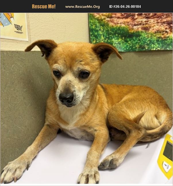 #A550421 I am described as a male, tan and white Chihuahua - Smooth Coated mix. The shelter thinks I am about 8 years old. I weigh approximately 14.40 lbs. I have been at the shelter since Apr 18, 2026 and I am available for adoption now!