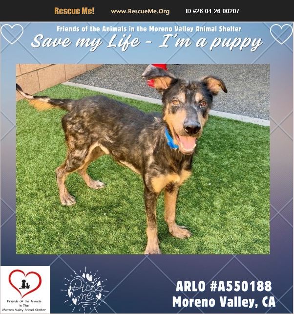��� PUPPY ��� SMALLER BOY ( 40 lbs. ARLO #A550188 (VIDEO LINK: https://myalbum.com/album/7jQmuwvVjzQ3Gc/ ) Male, black and brown Doberman Pinscher mix. The shelter thinks I am about 7 months old I weigh approximately 39.00 lbs. I have been at the shelter since Apr 08, 2026 and I may be available for adoption on Apr 15, 2026 at 2:25PM. Medical notes: 04/08/26 16:55 Dog is underconditioned (BCS 2/9), and does have patterned hairloss and crusting that is suspicious for mite infestation (scabies vs. demodex) Rec isolating ACT: apply bravecto- will need preventative for 6 months to ensure clearance NS mange like skin condition and under weight - body score of 2. SNC Staff notes: * Arlo walks well on a leash * Arlo appears to be potty trained * Arlo did well during his bath * Arlo is healing from demodetic mange * Arlo takes treats gently * Arlo is a happy puppy that loves to play keep away