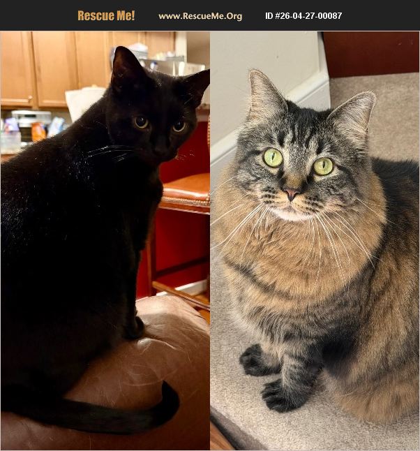 Litter mate sisters, must go together. Will be 4 years old in May. Due to my living arrangements changing in the not so distant day, I am starting the process of finding these beautiful girls a new home. While they do not live with dogs or children, we have visitors and they do fine with both. They will come with all supplies that I have on hand; food, litter box, cat tree, toys and grooming tools. Also both are chipped.