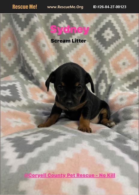 PLEASE READ FULL AD PRIOR TO CONTACT. ONCE THIS PET IS ADOPTED THIS AD WILL BE REMOVED. ADOPTER RESPONSIBLE FOR ALL TRANSPORT. PETS WILL NOT BE SHIPPED AS FREIGHT. WE ARE A RESCUE NOT A BREEDER! ***SYDNEY OF The 'Scream' litter. Born 11March26. 4 females & their Mom. Mom is Manchester/chihuahua Mix: Darla from the 'Finding Nemo Bunch'. Came to rescue on 26Feb26 (5th photo is Darla) already pregnant from a hoarding situation (back yard breeder) this rescue has no way of knowing what breed the sire of each of these puppies was! We are not breeders! Our puppy package to adopt includes de-wormer, all three rounds DAPPv, Bordetella vaccine, heartgard at 8 weeks, starter puppy collar or harness, starter leash, starter food, blanket, starter bed, starter toy, starter crate or carrier. For $125.00 with approved application to adopt plus microchip fee & contract to spay by 6 months of age. The application to adopt can be found in the Application tab at CCPRNOKILL.ORG. Read & Follow the Instructions Therein. ONCE THIS PET HAS BEEN ADOPTED THIS AD WILL BE REMOVED.