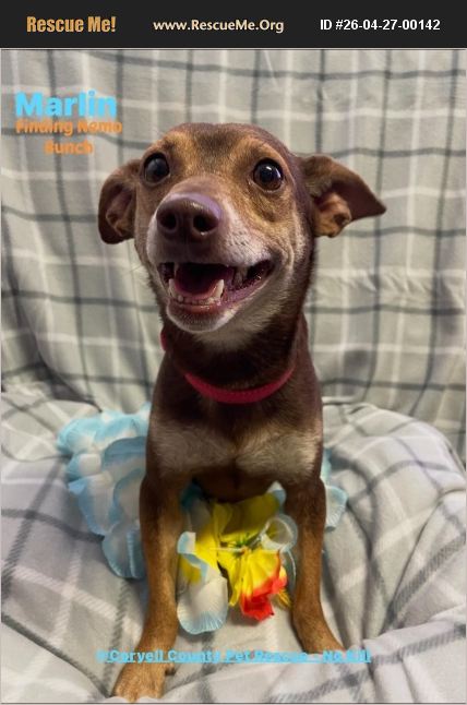 PLEASE READ FULL AD PRIOR TO CONTACT. ONCE THIS PET HAS BEEN ADOPTED THIS AD WILL BE REMOVED. ADOPTER IS RESPONSIBLE FOR ALL TRANSPORT. PETS WILL NOT BE SHIPPED AS FREIGHT. THIS IS A RESCUE NOT A BREEDER. ***Marlin from The 'Finding Nemo Bunch'. Neutered Male Manchester Terrier/Chihuahua Mix. Est. 4 yrs of age. 17. Lbs. Heartworm negative. Vaccinations current including Rabies. Current on preventions. Good with most other dogs. Cat curious. Respectful children only. Adoption fee is $125.00 with approved application & microchip fee. The application to adopt can be found in the application tab at CCPRNOKILL.ORG. Please read and follow the directions therein or request application via email at [email protected]. we will not respond to emails requesting more photos or asking for answers we have provided for your convenience in this ad. ONCE THIS PET HAS BEEN ADOPTED THIS AD WILL BE REMOVED.