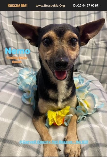 PLEASE READ FULL AD PRIOR TO CONTACT. ONCE THIS PET HAS BEEN ADOPTED THIS AD WILL BE REMOVED. ADOPTER IS RESPONSIBLE FOR ALL TRANSPORT. PETS WILL NOT BE SHIPPED AS FREIGHT. THIS IS A RESCUE NOT A BREEDER. *** NEMO from The 'Finding Nemo Bunch'. Neutered Male Manchester Terrier/Chihuahua Mix. Est. 2 yrs of age. 19. Lbs. Heartworm negative. Vaccinations current including Rabies. Current on preventions. Good with most other dogs. Cat curious. Respectful children only. Adoption fee is $125.00 with approved application & microchip fee. The application to adopt can be found in the application tab at CCPRNOKILL.ORG. Please read and follow the directions therein or request application via email at [email protected]. we will not respond to emails requesting more photos or asking for answers we have provided for your convenience in this ad. ONCE THIS PET HAS BEEN ADOPTED THIS AD WILL BE REMOVED.