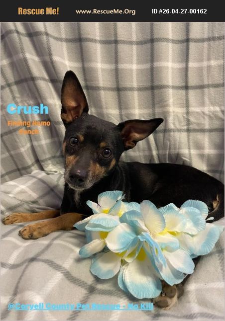 PLEASE READ FULL AD PRIOR TO CONTACT. ONCE THIS PET HAS BEEN ADOPTED THIS AD WILL BE REMOVED. ADOPTER IS RESPONSIBLE FOR ALL TRANSPORT. PETS WILL NOT BE SHIPPED AS FREIGHT. THIS IS A RESCUE NOT A BREEDER. *** CRUSH from The 'Finding Nemo Bunch'. Neutered Male Manchester Terrier/Chihuahua Mix. Est. 2 yrs of age. 18. Lbs. Heartworm negative. Vaccinations current including Rabies. Current on preventions. Good with most other dogs. Cat curious. Respectful children only. Adoption fee is $125.00 with approved application & microchip fee. The application to adopt can be found in the application tab at CCPRNOKILL.ORG. Please read and follow the directions therein or request application via email at [email protected]. we will not respond to emails requesting more photos or asking for answers we have provided for your convenience in this ad. ONCE THIS PET HAS BEEN ADOPTED THIS AD WILL BE REMOVED.