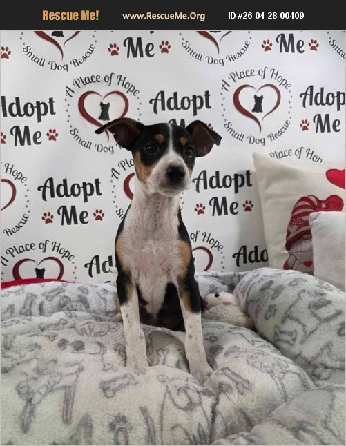 LOCAL ADOPTION ONLY - Within a one hour drive to Pensacola FREDDY is a Rat Terrier mix surrendered to us with the rest of her litter to find a home. They were born on February 21st and will be ready to go home on May 1st. FREDDY is the only boy of the group and definitely keeps things lively. He has a big personality and tends to lead the pack, with his sisters often following right behind him. He is full of energy, loves to run and play, and is always in the middle of the action. When he finally slows down, he is incredibly affectionate and enjoys cuddle time just as much as playtime. FREDDY does great with other dogs and would do best in a home with a playful companion who can match his energy. He has not been tested with cats or children. He is not housebroken yet but does use a dog door and enjoys spending time outside. At night, he settles in nicely and sleeps in the big bed, right where he wants to be. FREDDY has already had his first puppy shot and is getting his second one on April 30th. The third puppy shot is covered by the rescue and will be given about 3 weeks after the second shot. His neuter will be scheduled at one of our vets when he is old enough and is also covered by the rescue. Because he has pending vet appointments, FREDDY is local adoption only which is within a one hour drive to Pensacola. *To meet or adopt, you must first submit an adoption application for review. Important - check your spam folder for follow up questions and responses from our team. *A Place of Hope Rescue is a foster-based rescue located in Pensacola, Florida. We do not have a physical facility for visits. We adopt within a 6 hour drive to Pensacola. Puppies and dogs with pending vet appointments, and dogs with behavioral or medical issues are only adoptable locally (within 1 hour to Pensacola). We do not ship or transport our dogs. To view our adoptable dogs, find adoption fees, submit an application, and learn more about us, please visit: www.aplaceofhoperescue.com