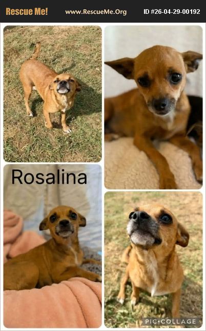 Meet Rosalina - the tiny queen with a big personality ���� Rosalina is a 5-year-old Chihuahua weighing in at just 10 lbs, but don't let her size fool you-she is absolutely the life of the party. If there's fun happening, she's in the middle of it with her signature butt wiggles going nonstop. She's potty trained, uses a dog door like a pro, and is crate trained. Rosalina loves being outdoors and will happily soak up the sunshine whenever she gets the chance. While she can walk on a leash, it's not exactly her favorite hobby-but she's smart and eager enough to learn anything you're willing to teach her. Rosalina is incredibly social and thrives with other dogs. Big, small-it doesn't matter. Her best friend is 120 lbs, and she keeps right up. That said, she'd appreciate a home where bigger dogs are respectful of her size (no accidental trampling, please). She's very snuggly and happiest when she's curled up with her people or cuddling another dog. Because of how much she loves companionship, she would do best in a home where someone is around most of the time. A fenced yard would be ideal so she can safely enjoy her outdoor time. She does have a habit of jumping up-but honestly, what little dog doesn't? If you're looking for a fun, affectionate, social little dog who brings energy and love wherever she goes, Rosalina is ready to be your girl. Adoption Info: All of our animals are fully vetted, which includes spay/ neuter, up to date on vaccines, wormed, heartworm tested and treated if necessary, up to date on flea/tick/heartworm prevention, and microchipped prior to adoption. Our requirements are non-negotiable and include the following: All current pets in the home must be spayed or neutered if over 6 months of age, unless there is a documented medical exemption with veterinary confirmation. All current dogs must be up to date on Rabies and Distemper/Parvo (DHPP) vaccinations. All current dogs must be on consistent, consecutive heartworm prevention. Past dogs listed on the application must also show a consecutive history of heartworm prevention. To start the adoption process, please fill out our application here: - https://www.shelterluv.com/matchme/adopt/WAG/Dog Please note: The dog you're applying for might already have a meet-and-greet scheduled, be on a trial with another family, or has been offered to another rescue within our network Don't worry though - we're always happy to help you find another great match if that happens! Our goal is to make sure every pup ends up in the best home for their needs (and yours too!)